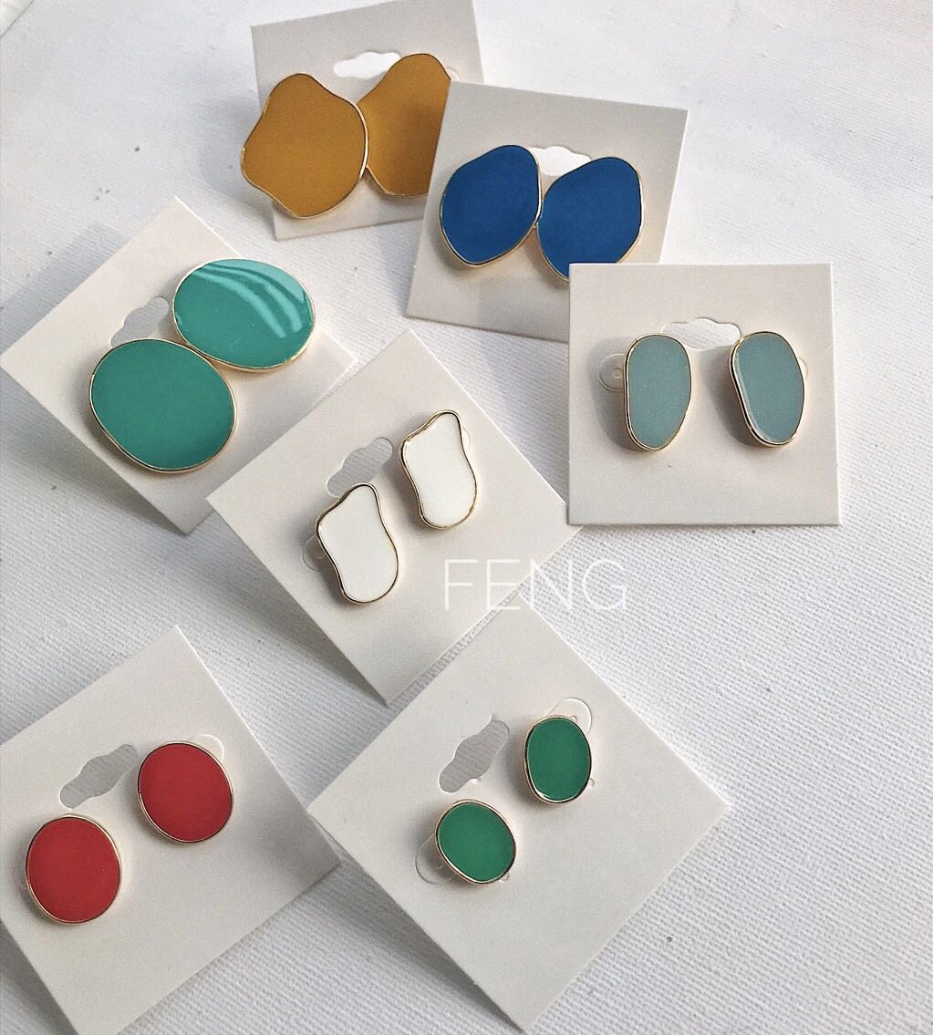 推荐复古色彩不规则设计滴油百搭时尚925银针耳钉耳夹女新款包邮热门设计联盟服务商