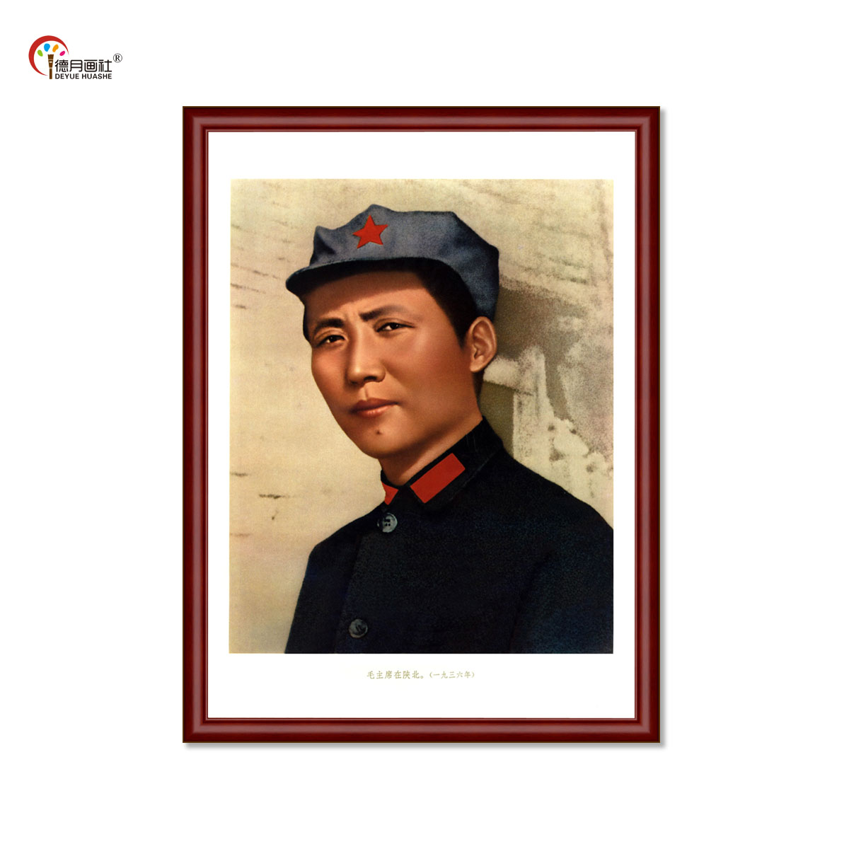 毛主席画像挂画毛泽东在陕北红军军帽装照片画中式客厅画框装饰画热门设计联盟服务商
