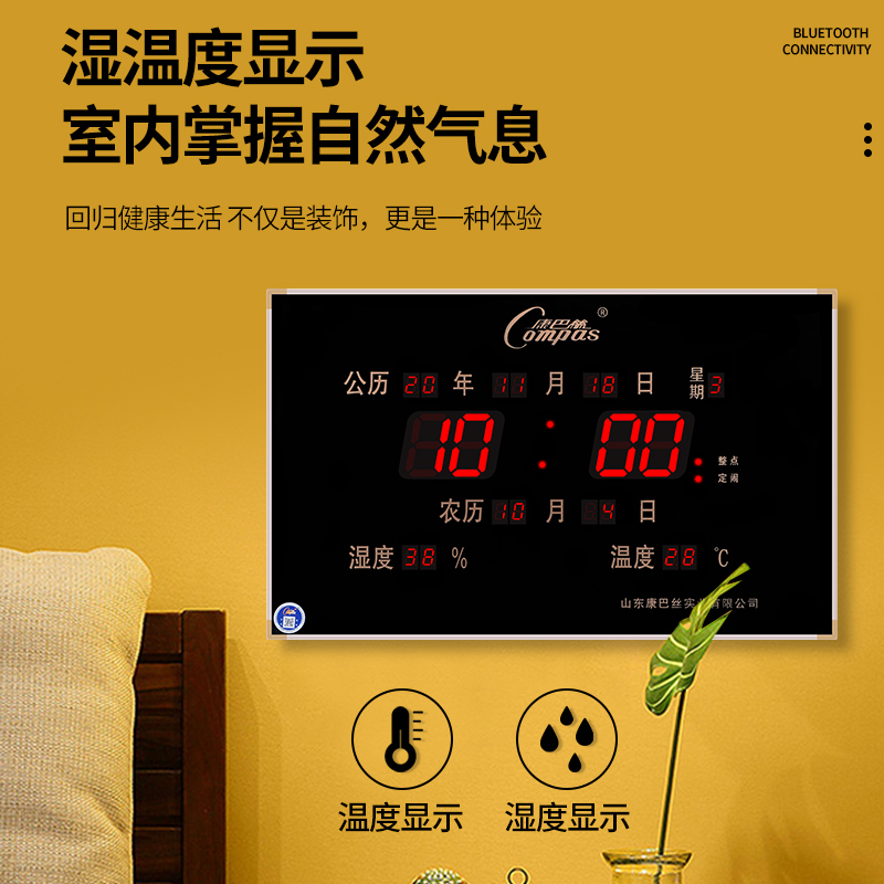 康巴丝数码家用电子万年历挂钟2021新款时钟日历静音走时客厅壁挂热门设计联盟服务商