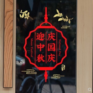 大门图案珠宝店中秋节店铺装饰橱窗贴纸贴图贴门美容院节日门窗。热门设计联盟服务商