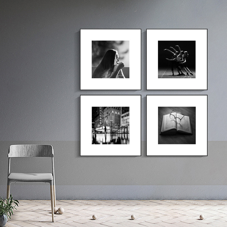 黑白摄影组合装饰画现代风景人物小众艺术极简客厅沙发背景墙挂。热门设计联盟服务商