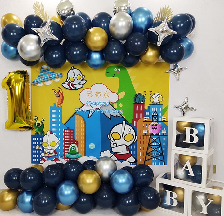 奥特曼主题宝宝生日海报装饰气球套装周岁满月百天抓周场景布置。热门设计联盟服务商