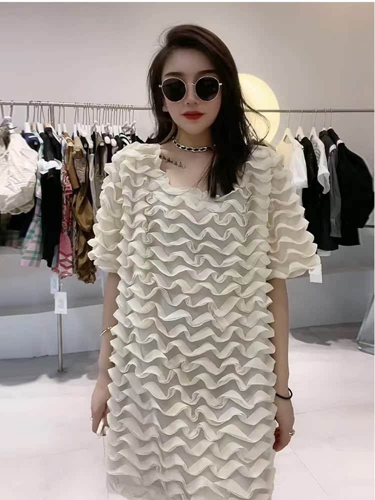 东大门新款立体千层拼接木耳边连衣裙夏季设计感小众显瘦a字裙热门设计联盟服务商