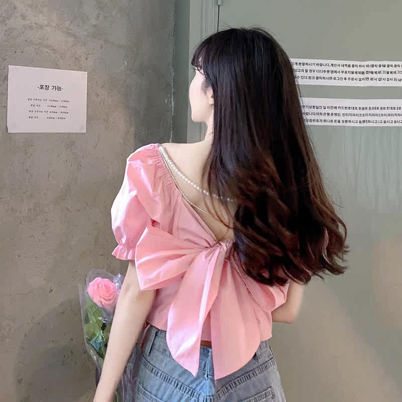 洋气蝴蝶结短袖衬衫女设计感小众夏季2021年新款韩版宽松显瘦上衣热门设计联盟服务商